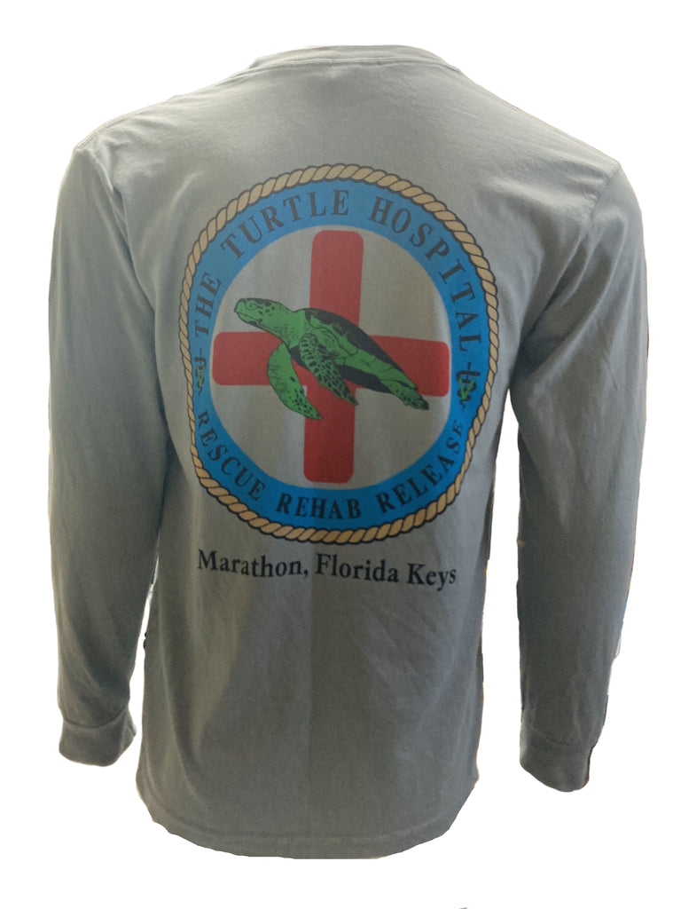 This long sleeve unisex t-shirt features a small Turtle Hospital logo on the front left chest and a large Turtle Hospital logo centered on the back. This shirt is Comfort Color brand and 100% pre-shrunk cotton.