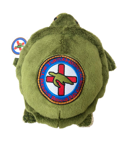 An adorable 10" plush sea turtle with The Turtle Hospital logo on the shell.