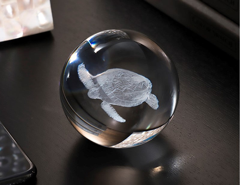 🐢✨🌊Crystal Sea Turtle Laser-Etched Sphere , A Refined Nautical Accent