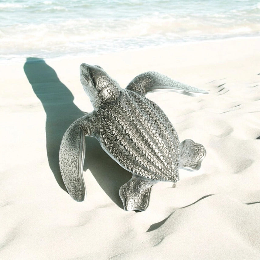 Celebrate and honor the beauty of the Leatherback with this detailed pewter pin. Crafted by renowned artist and conservationist Roland St. John, this 2" pin captures the essence of a hatchling racing to the sea—a symbol of hope and survival for this ancient species.