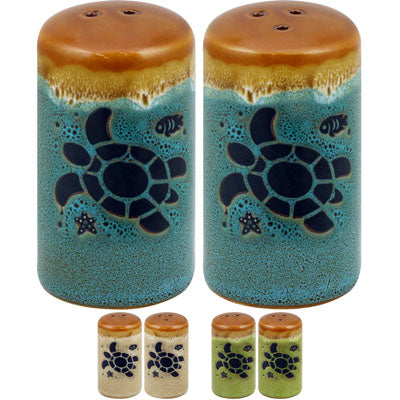Salt & Pepper Shakers- Drip Glaze Turtle