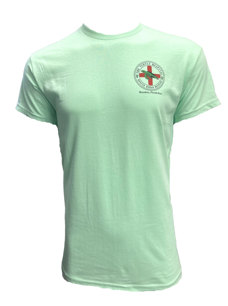 This unisex t-shirt features a small Turtle Hospital logo on the front left chest and a large Turtle Hospital logo centered on the back. This shirt is 100% pre-shrunk cotton.