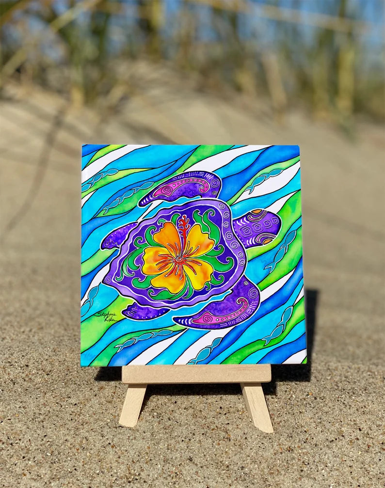Ceramic Tile-4.25"x4.25" Hibiscus Turtle